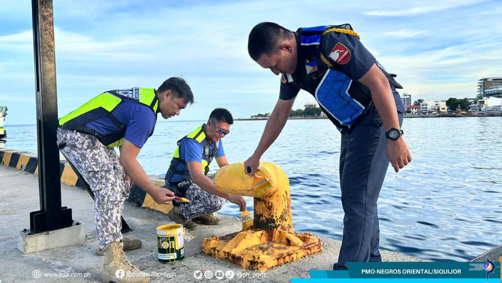 Bilang bahagi pa rin ng selebrasyon ng Maritime Week, pininturahan ng mga kawani ng Port Management Office Negros Oriental/Siquijor ang mga bollard sa Port of Dumaguete nitong ika-4 ng Hulyo 2025.